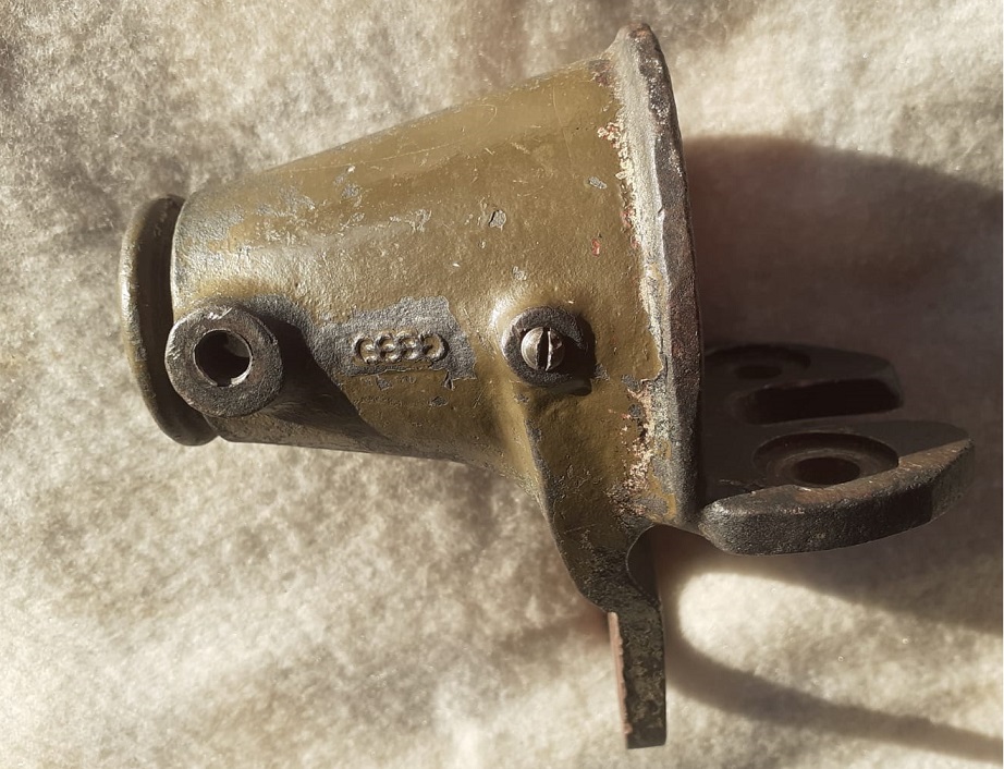 Visando facilitar o restauro da pintura dos órgãos da transmissão selecionamos uma peça com pintura original como amostra para reproduzir numa loja de tintas o tom original observado. |