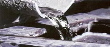 Fig. 5 - Vazamento da liga em cadinho em processo de refusão.