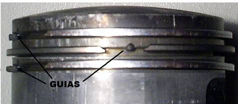 No corpo do pistão há sempre um espaçador entre cada sulco de montagem. Observe com cuidado a posição do anel para que os cortes fluem corretamente assentados nos pinos de guia. Conforme fotos ilustrativas a seguir.